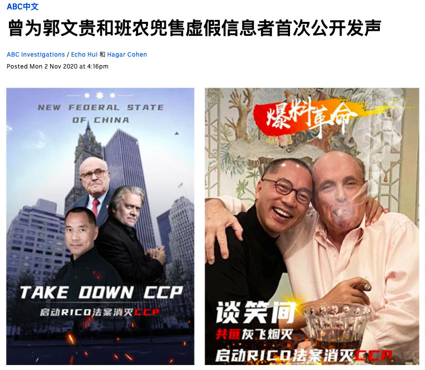 ABC仅凭一面之词,就发表如此充满诋毁暗示、严重失实的报道,企图在爆料革命、中共病毒和三个硬盘的问题上向其受众灌输错误信息,以期达到混淆视听的目的,变相成为了CCP媒体超限战的帮凶。
