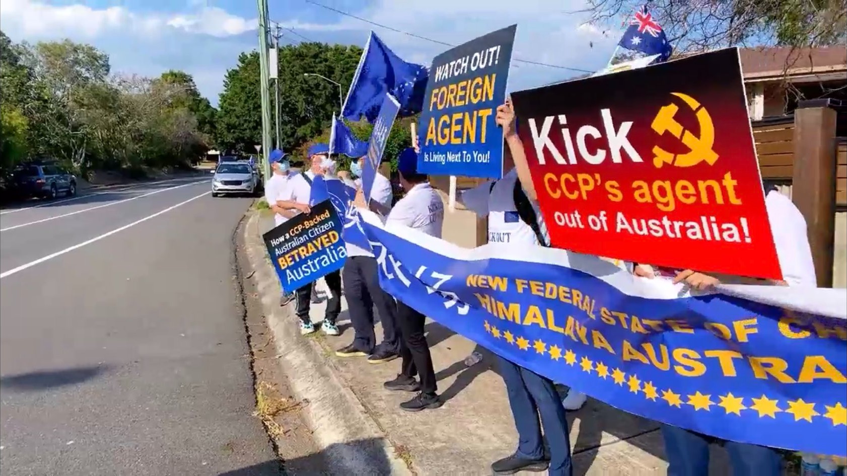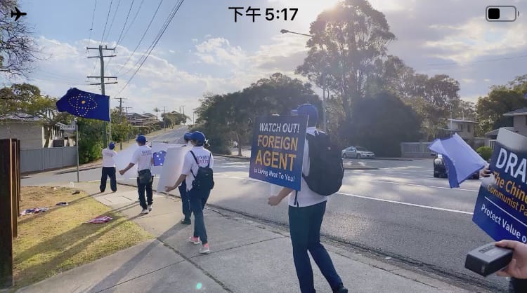 在《Take Down The CCP》的歌曲声中,十多位新中国联邦&爆料革命昆州本地战友,统一着装,挥舞着联邦国旗,在“鸡腿潘”家门口高举“How a CCP-Backed Australian Citizen BETRAYED Australia(一位CCP支持的澳洲公民是如何背叛澳大利亚) ”、“Kick CCP’s agent out of Australia(将中共代理人踢出澳洲)”、“DRAIN The Chinese Communist Party Swamp!Protect Value of Australia!(排干共产党的沼泽,保护澳大利亚的价值观)”等标语,激情澎湃,斗志昂扬,高喊着“鸡腿潘Lie,Australia Die”,“Take Down CCP”,在一声声的抗议的呐喊声中,表达着对CCP邪恶压迫的强烈不满。