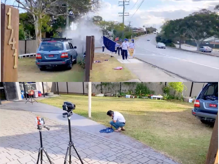 “惩贼行动”最终的成功,离不开文铭姐、阿强等精心的组织策划与果敢的行动,更离不开每一位战友的积极参与,全情投入。整个筹划过程,虽说不上惊心动魄,却也是一波三折,各种暗流涌动,整个团队成立伊始便经历了澳洲农场的分拆重组及CCP潜伏力量的各种干扰。特别是在向“鸡腿潘”家所在地警署申请许可的过程中,组织者深切的感受到CCP蓝金黄渗透力量的干预。因“鸡腿潘”家恰好在两个地区的交界处,当文铭姐与阿强等拿着充满准备的详细材料去到第一家警署时,对方很快即同意并告知他们还需向另一家警署申请许可即可;当他们再次来到第二家警署时,却遭到了当值副警长的百般刁难,一个申请表格让反复修改,而每次都是按照其意见修改的,这个过程来来回回,磨磨蹭蹭耗费了一个小时,不知道的还以为进了CCP的衙门里了。就在此时,“鸡腿潘”突然出现在警署,一到警署便直奔停车场拍了所有车辆的车牌信息,然后直冲进入大厅拍摄。其后更卑劣的将拍摄的视频发到Twitter平台,企图暴露战友的信息,以此恐吓威胁。