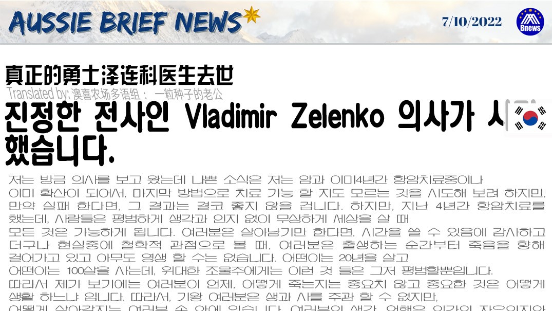 다만 비극적인 것은, 너무 어렵다는건데, 그래서 어떻다는 거죠! 이것이 곧 계속되는 투쟁이고 수 많은 고통을 겪은 후에도 저는 여전히 포기하지 않았지만, 저는 이런 고통을 원하지는 않았습니다. 하지만 이 모든게 하늘의 뜻이고, 따라서, 저는 제가 겪는 이 일을 겪었을 때,내면적 으로 평온했고 이것은 제가 일생동안 원하던 거였습니다. 현재에 있는것에 감사 합니다. 진정한 전사인 Vladimir Zelenko 박사