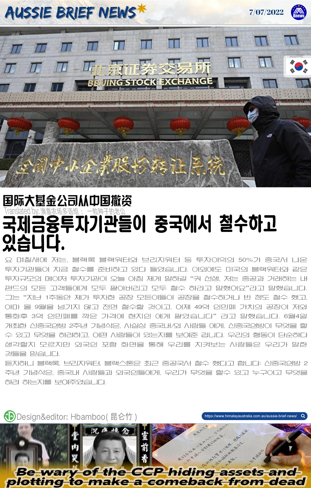 듣자하니 블랙록, 브리지워터, 블랙스톤은 최근 중공국서 철수 했다고 합니다; 신중국연방 2주년 기념식은, 중국내 사람들과 외국인들에게, 우리가 무엇을 할수 있고 누구이고 무엇을 하려 하는지를 보여주었습니다.