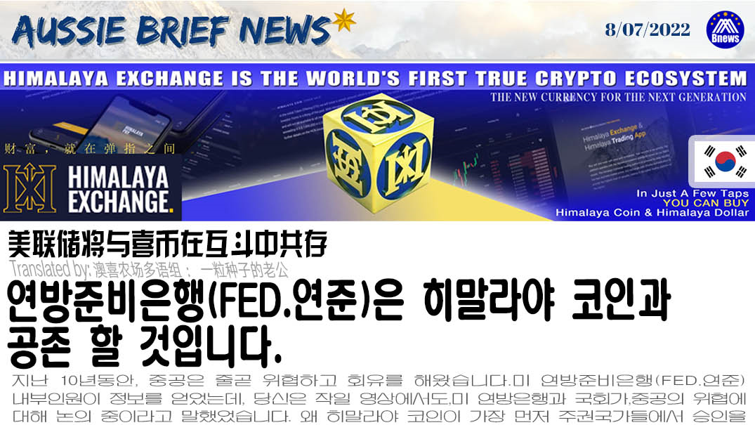 지난 10년동안, 중공은 줄곧 위협하고 회유를 해왔습니다.미 연방준비은행(FED.연준)내부인원이 정보를 얻었는데, 당신은 작일 영상에서도,미 연방은행과 국회가,중공의 위협에 대해 논의 중이라고 말했었습니다. 왜 히말라야 코인이 가장 먼저 주권국가들에서 승인을 받는데 유리한지 제 생각에 지금, 미 연방준비은행이 어떤 도전에 직면해 있는지 아주 잘 알고 있다고 생각 합니다. 현재 인플레이션과 전 세계화폐 양적완화, 더구나, 지금 디지털화폐 시대가 왔는데 연방은행에게는 최대의 도전 입니다. 연방은행이 디지털화폐를 억눌러 죽이는건 불가능하지만, 죽이기 전에 억제 하기위해서는 노력할 것입니다.억제하는중에 디지털화폐와 공존하는 방법을 도출할 것인데, 모든 디지털화폐가 연준을 안심 못하게 하는 것은, 말 그대로, 연준의 생각에, 디지털화페 소위 탈중앙화 하여 미국 달러에 대항하고 그리고 개인인증(KYC)도 없고 소위 대 테러와 관련있는걸 걱정 합니다. 그러면, 당초 히말라야 코인은 설계당시 최후 개인블록체인을 이용하고 공공블록체인은 사용 안하기로 결정 합니다.개인블록체인은 가장 중요한 것은,미국 모건 시스템(Quorum blockchain) 을 이용한것인데 이더리움 코인이 가장 최신 기술을 이용한 것으로, 히말라야 코인은 가장 안전하고 보안성이 높습니다. 그런데 개인 블록체인을 이용하고 중앙화 한 겁니다. 더욱 중요한건, 히말라야거래소의 예금과 부합하여 진정으로 세계에서 가장 안정적인 코인으로써 HDO(Himalaya Dollar)라 부릅니다. 정말 위대합니다.실제로 100% 미국달러 입니다. 그래서, 미국인들은, 우리 히말라야 코인을 사용하며 안심해도 됩니다. 러시아 루블 혹은 중국 인민폐와 연동 안합니다.만약 당신들이 히말라야 인민폐를 쓰거나, 히말라야 루블을 쓰면 끝장나고, 히말라야 터키돈을 써도 끝장 나는 겁니다. 히말라야 코인은 진정한 스테이블 코인이고 1원도 맘대로 안 움직입니다. 더구나 20%는 황금과 연동합니다.그래서 이 모든 것은 전통적인 법정화폐 요구와, 미국의 달러에 대한 지위 및 안전,반 자금세탁 조건에 부합 합니다. 그래서 미 연방은행이 히말라야코인을 지지한다면 세계에 긍정적 신호가 될것입니다. 이 의미는, 연방은행은 모든 디지털화폐에 반대 혹은 디지털통화 시대에 반대하지 않고, 히말라야 코인처럼, 소유자, 중앙화, 개인인증(KYC)이 있고 미국과 협력시 범죄수단이 안되는 디지털화폐를 수용 가능하다는 겁니다.그건 당연한 겁니다.그래서 히말라야코인은 이번 중공의 침투에 대항 했는데, 중공의 중요한 다음 단계는 무엇일까요? 중공의 다음 스텝은 무엇일까요? 중공국은 모든 중앙화 디지털화폐를 중국내서 못쓰도록 하고 위반하면 범죄이고 중범은 총살 경범은 감옥살이 시키는데, 이건 마치 청나라 당시 서양책과 담배를 아무도 감히 못쓰고 보았고 총을 갖고 놀면 바로 잡아 총살시켰고 더구나 멸족 했습니다. 청왕조 당시 마인드는 국제사회가 산업혁명으로 가고 레이다 및 대 항해시대가 도래하고 통신이 생겨났는데, 이 모든 것은 청 왕조의 중요 쟁점 이었으며, 완전히 이 모든 것을 거부하고 대항하는 태도 였습니다.청 왕조의 몰락하여 곧 세계의 기술, 문명과 동떨어졌습니다.