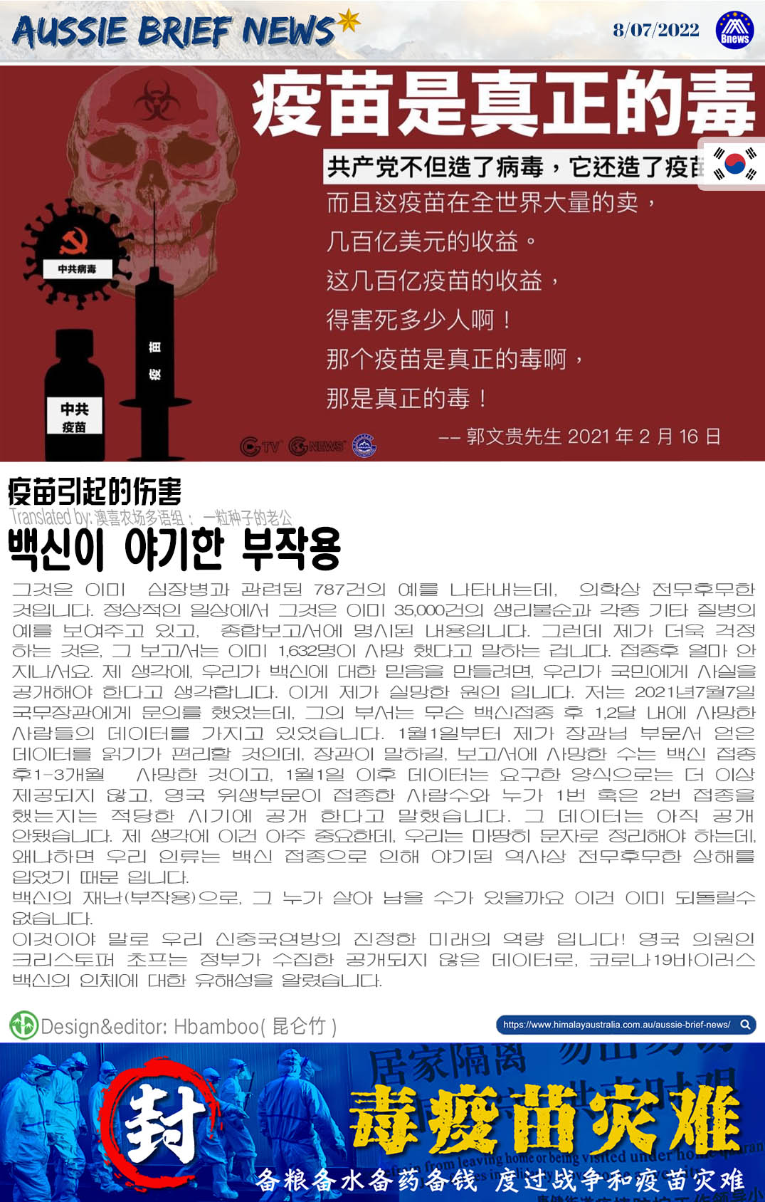 이것이야 말로 우리 신중국연방의 진정한 미래의 역량 입니다! 영국 의원인 크리스토퍼 초프는 정부가 수집한 공개되지 않은 데이터로, 코로나19바이러스 백신의 인체에 대한 유해성을 알렸습니다.