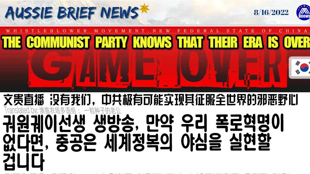 계급이며, 중공은 중국 인민에게 절대 법치민주를 누리게 하고 개 돼지 가축이 안되게 하는데 관심이 전혀 없고 몇 명의 양가이란이 나오던, 전혀 상관 안하고 또 다른 펠로시나 차잉원이 나오는걸 허락하지 않는다는 것을 이제 다 알고 있습니다. 미국, 서방국가들은 이제, 폭로혁명 같은 이런 플랫폼에서 만약 우리가 없다면 이 모든걸 못했을것임을 아주 잘 알고 있습니다. 이건 최근 많은 서방국가 정치가들이 말한, “궈 선생, 당신들 폭로혁명이 없었다면 서방국가들이 깨어날 때 까지 많은 대가를 지불했을것이고 심지어 실패 했을거고 중공의 일대일로, 돈, 정보, 군사 승리해서최후 중공이 이겼을 겁니다. 혹은 서방국가는 향수 수십년간 대가를 치루었을겁니다”라고 말했습니다.”