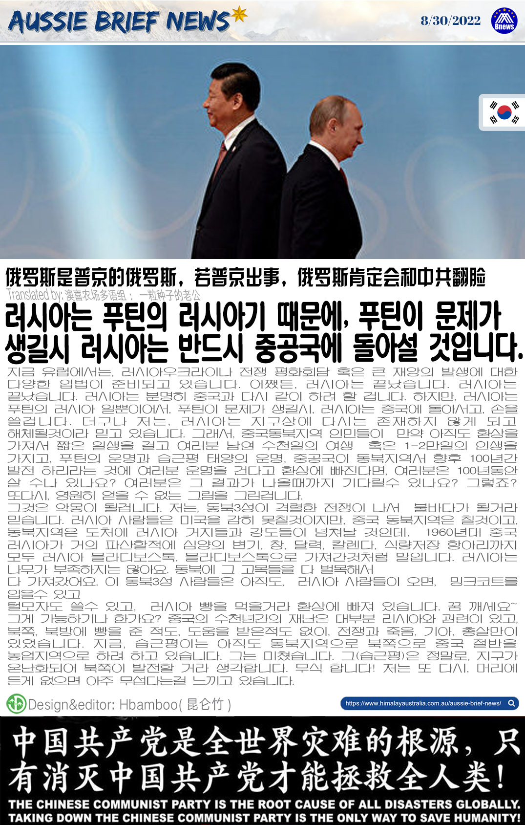 지금 유럽에서는, 러시아우크라이나 전쟁 평화회담 혹은 큰 재앙의 발생에 대한 다양한 입법이 준비되고 있습니다. 어쨌든, 러시아는 끝났습니다. 러시아는 끝났습니다. 러시아는 분명히 중국과 다시 같이 하려 할 겁니다. 하지만, 러시아는 푸틴의 러시아 일뿐이어서, 푸틴이 문제가 생길시, 러시아는 중국에 돌아서고, 손을 쓸겁니다. 더구나 저는, 러시아는 지구상에 다시는 존재하지 않게 되고 해체될것이라 믿고 있습니다. 그래서, 중국동북지역 인민들이 만약 아직도 환상을 가져서 짧은 일생을 걸고 여러분 남연 수천일의 여생 혹은 1-2만일의 인생을 가지고, 푸틴의 운명과 습근평 태양의 운명, 중공국이 동북지역서 향후 100년간 발전 하리라는 것에 여러분 운명을 건다고 환상에 빠진다면, 여러분은 100년동안 살 수나 있나요? 여러분은 그 결과가 나올때까지 기다릴수 있나요? 그렇죠? 또다시, 영원히 얻을 수 없는 그림을 그린겁니다.