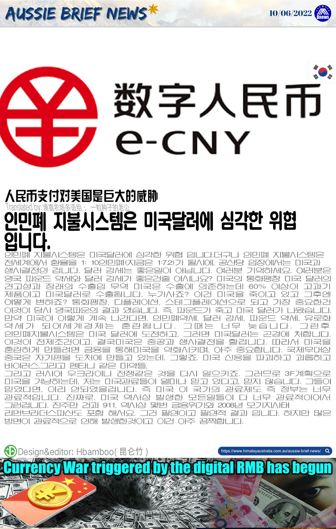 인민폐 지불시스템은 미국달러에 심각한 위협 입니다