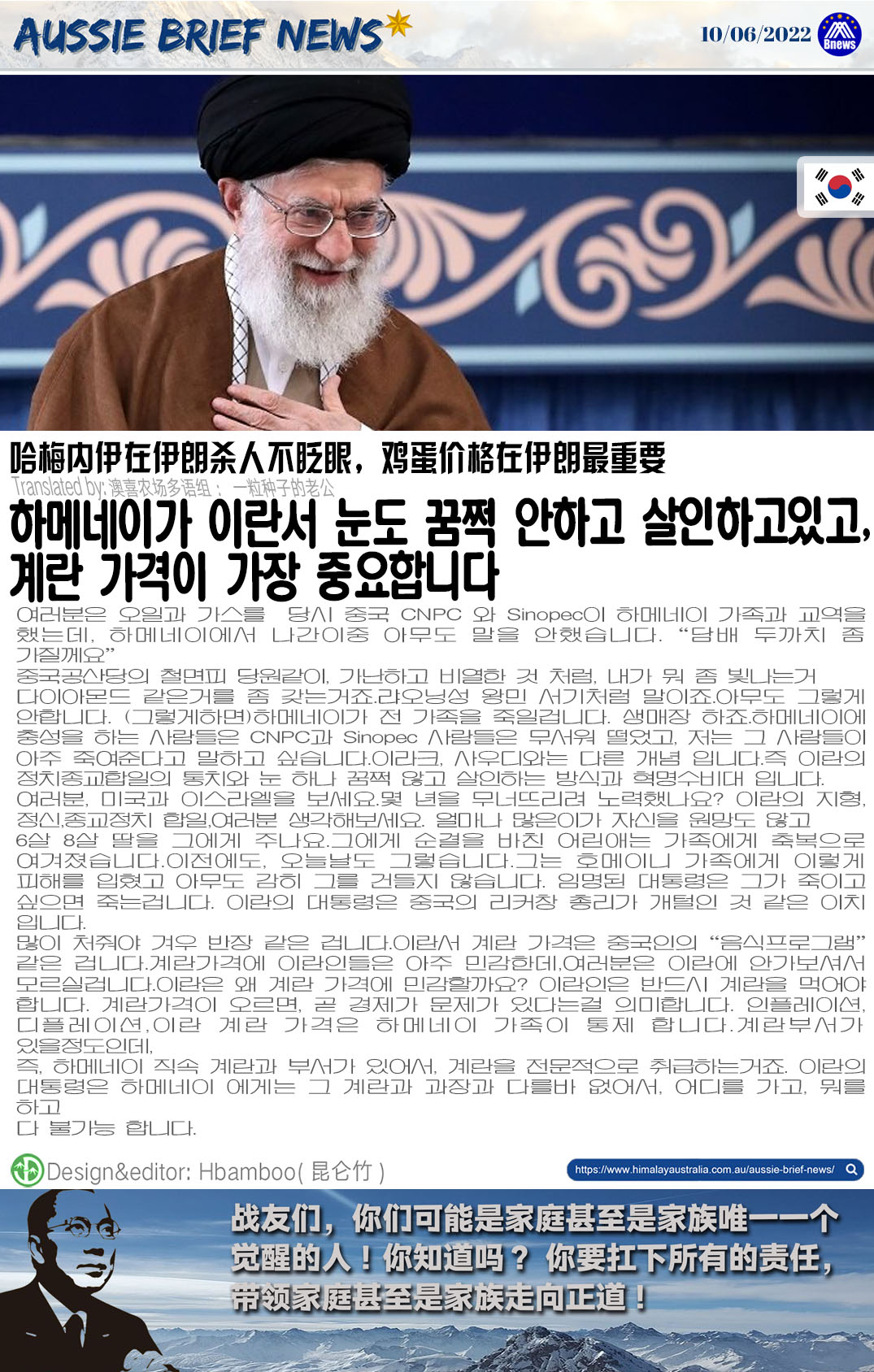많이 처줘야 겨우 반장 같은 겁니다.이란서 계란 가격은 중국인의 “음식프로그램”같은 겁니다.계란가격에 이란인들은 아주 민감한데,여러분은 이란에 안가보셔서 모르실겁니다.이란은 왜 계란 가격에 민감할까요? 이란인은 반드시 계란을 먹어야 합니다. 계란가격이 오르면, 곧 경제가 문제가 있다는걸 의미합니다. 인플레이션, 디플레이션,이란 계란 가격은 하메네이 가족이 통제 합니다.계란부서가 있을정도인데,