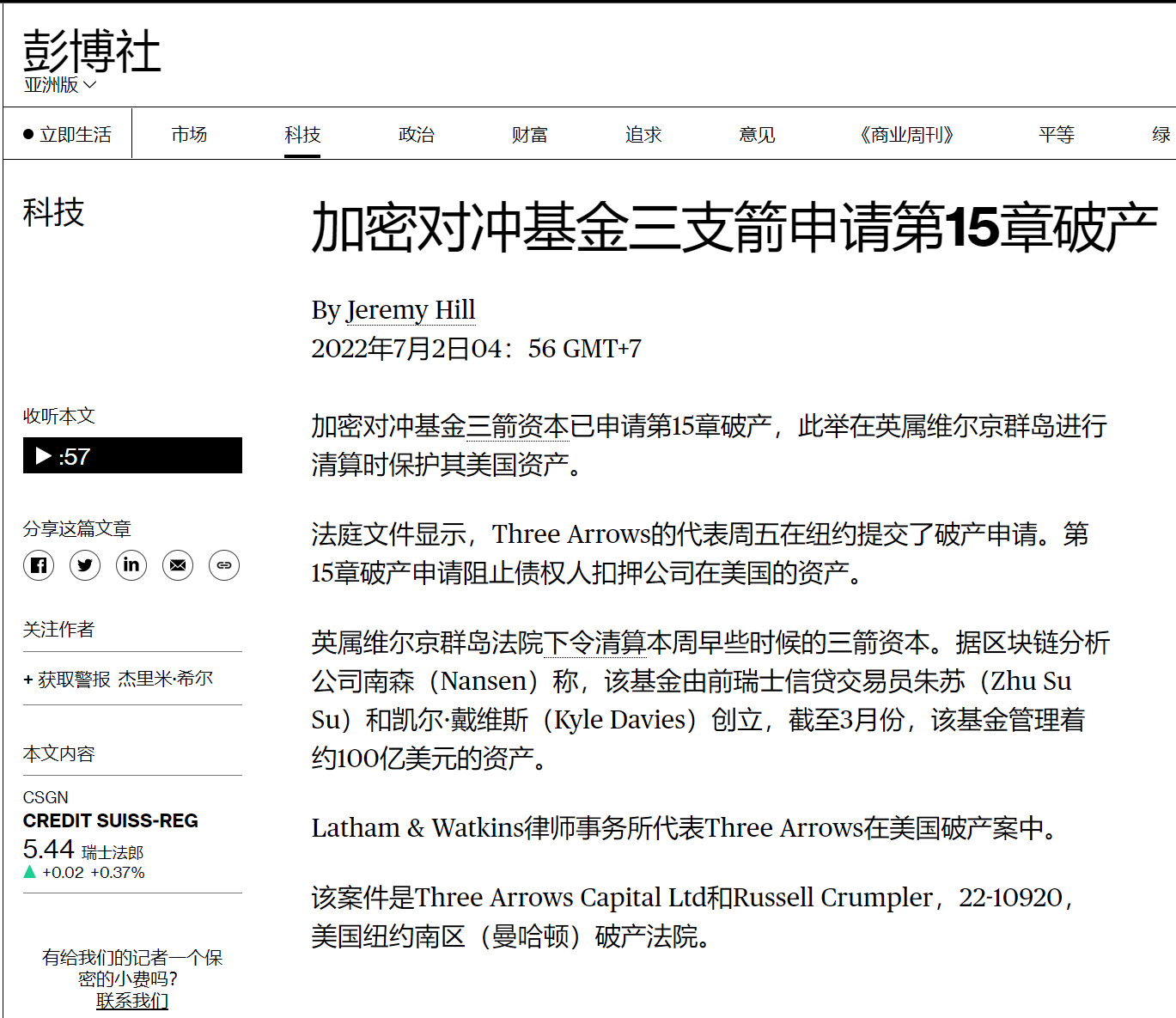 三箭资本是一个加密货币对冲基金,由前瑞士信贷交易员Zhu Su和Kyle Davies创立,管理约100亿美元的资产。据彭博社报道: